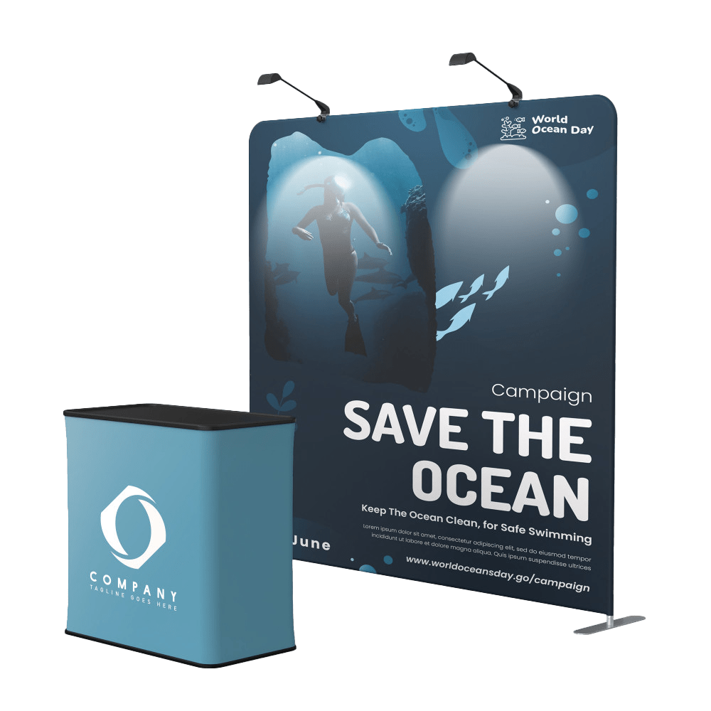 Yes, our in-house designers can create cohesive visuals that tie your booth, signage, and promo items together for a consistent, professional look.